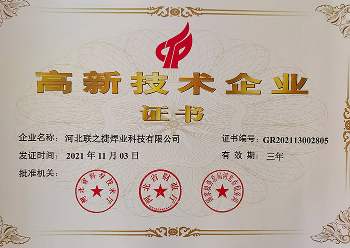 2021年11月03日,河北聯之捷焊業科技有限公司榮獲稱號...